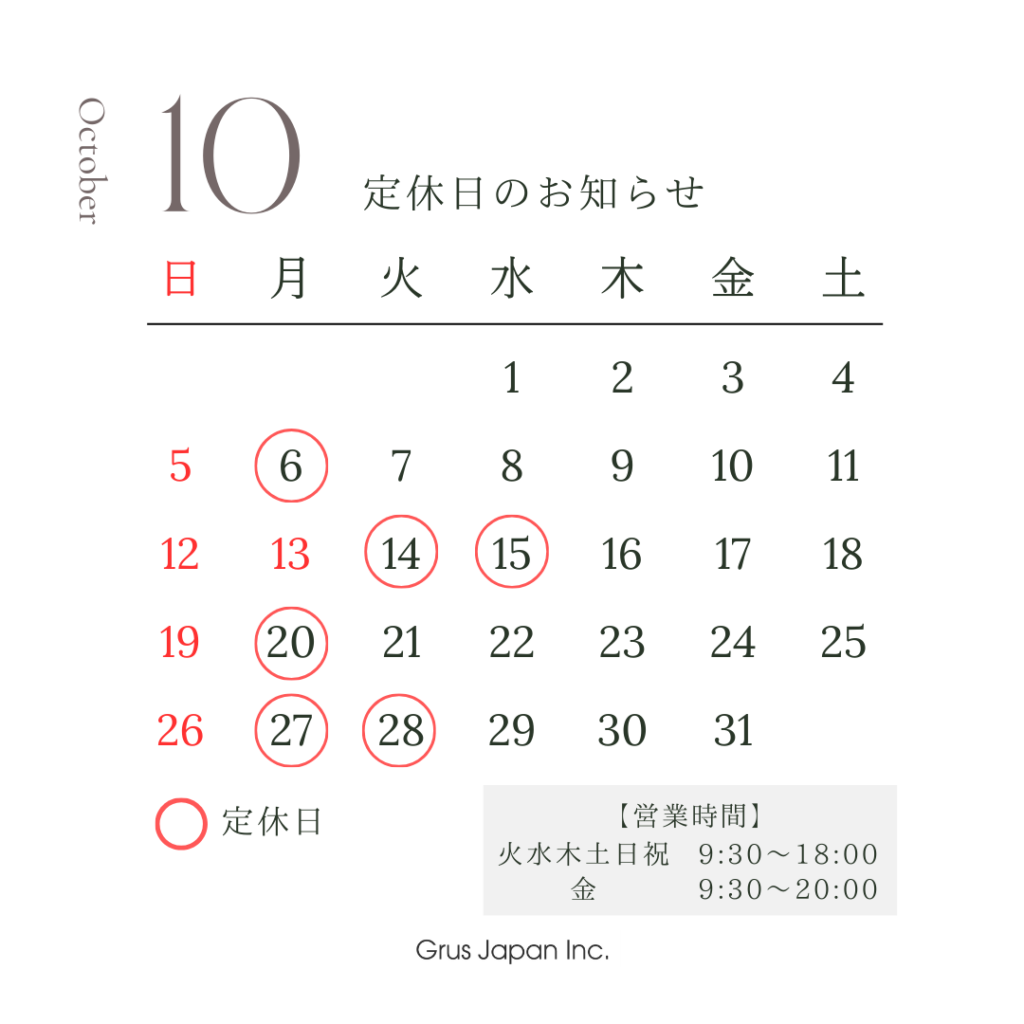 10月定休日のお知らせです。